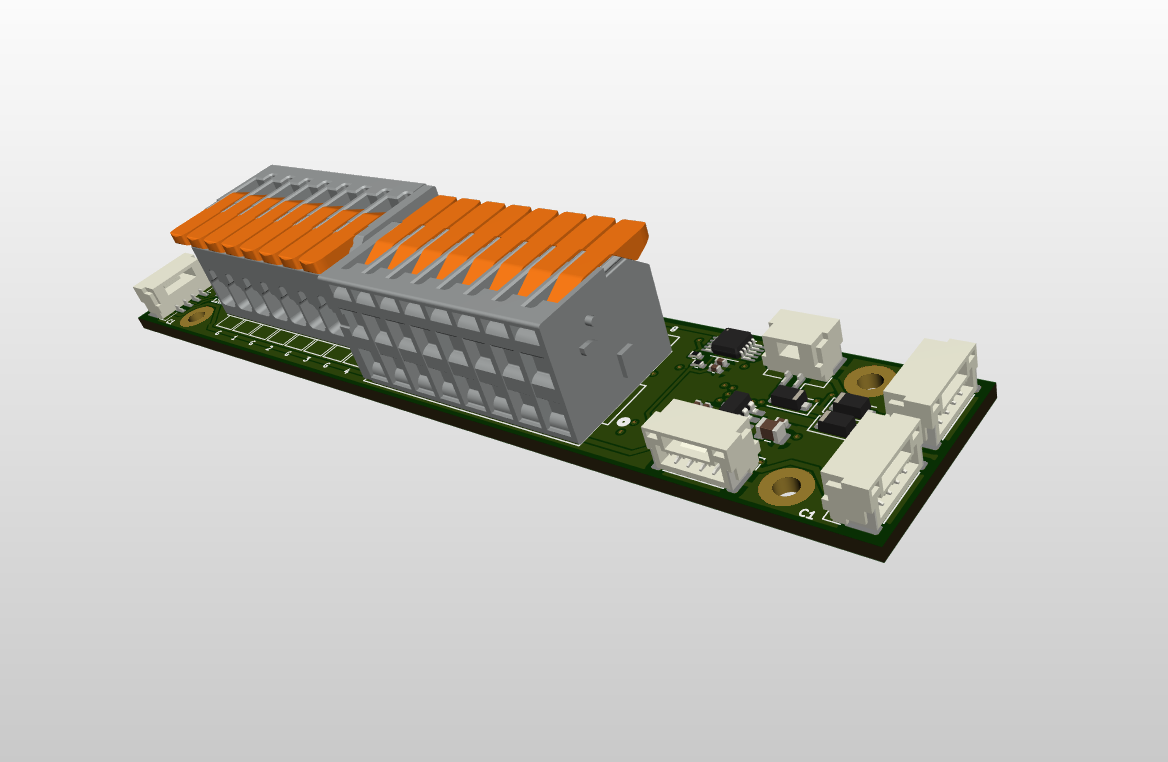Compact DroneCAN expansion module that supports up to 8x ROV thruster ESCs, connected with vibration resistant and easy to operate WAGO terminal blocks. Supports battery voltage monitoring, configurable node ID and data rate up to 5 Mbps, with PX4/Ardupilot-compatible pinout. Designed to fit into small ROVs with tubular frames from 50mm diameter.